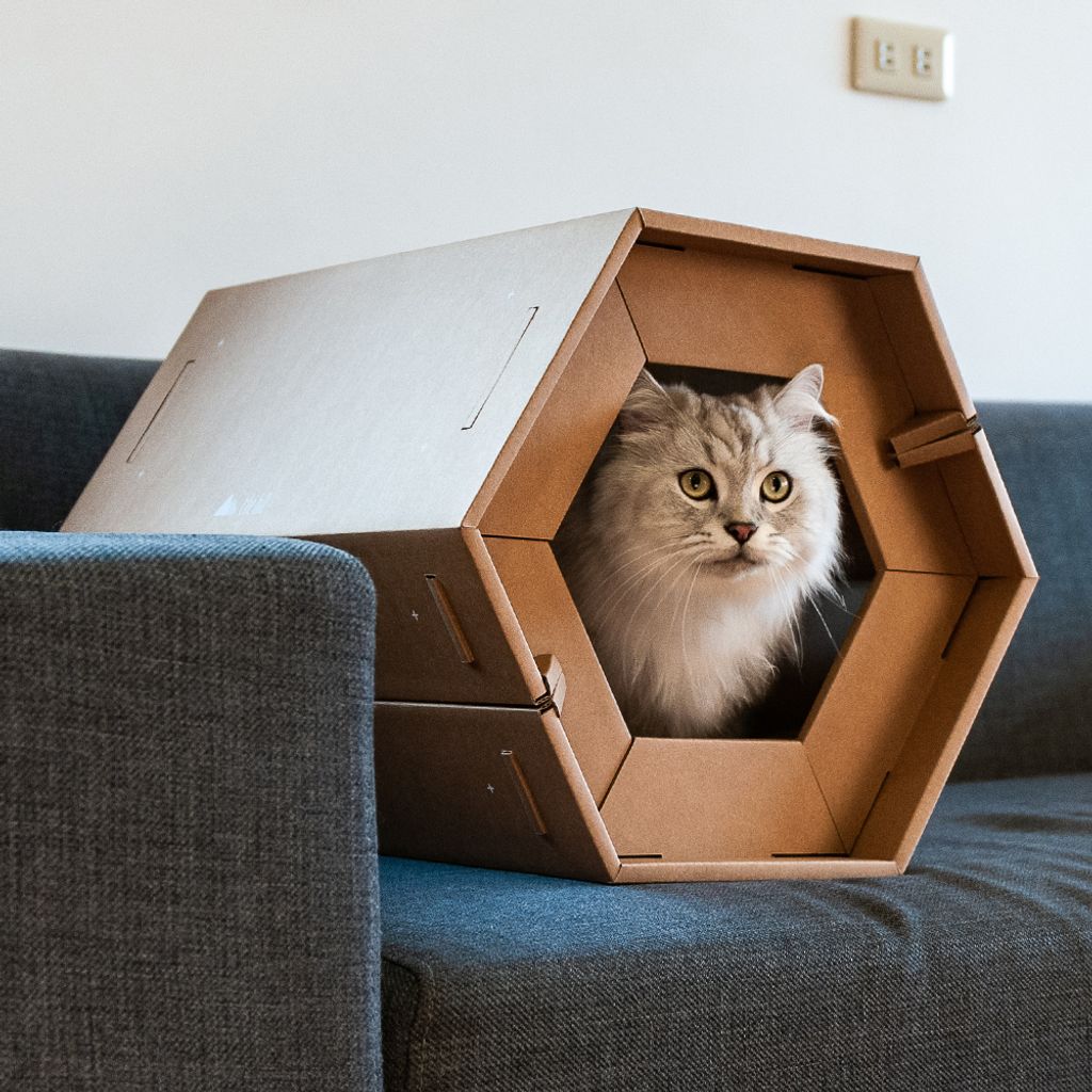 <組合商品內容: CARTON好厝 五角瓦楞紙貓屋x3個>
