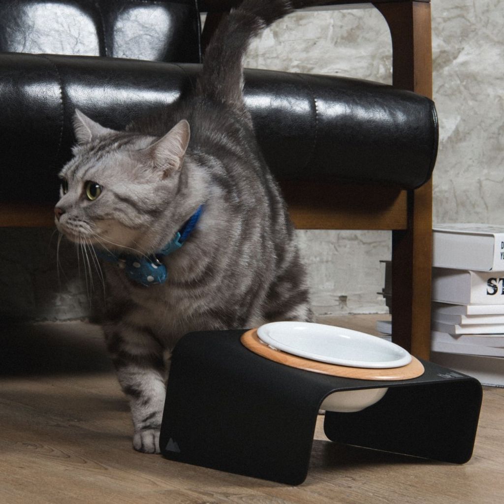[福利品] METALION好食(S) 金屬寵物食器台 玄武黑